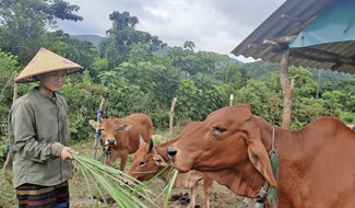 Mấy năm về trước, gia đình chị Hồ Thị Hương ở thôn Thanh 1, xã Thanh, huyện Hướng Hóa gặp nhiều khó khăn trong việc phát triển kinh tế. Cả nhà chỉ trông chờ vào diện tích nhỏ trồng sắn và chuối, vì thế vợ chồng chị rất chật vật trong việc nuôi 4 đứa con học hành. Năm 2022, Chương trình “Đồng hành cùng phụ nữ biên cương” hỗ trợ gia đình chị 1 con bò giống trị giá 10 triệu đồng.