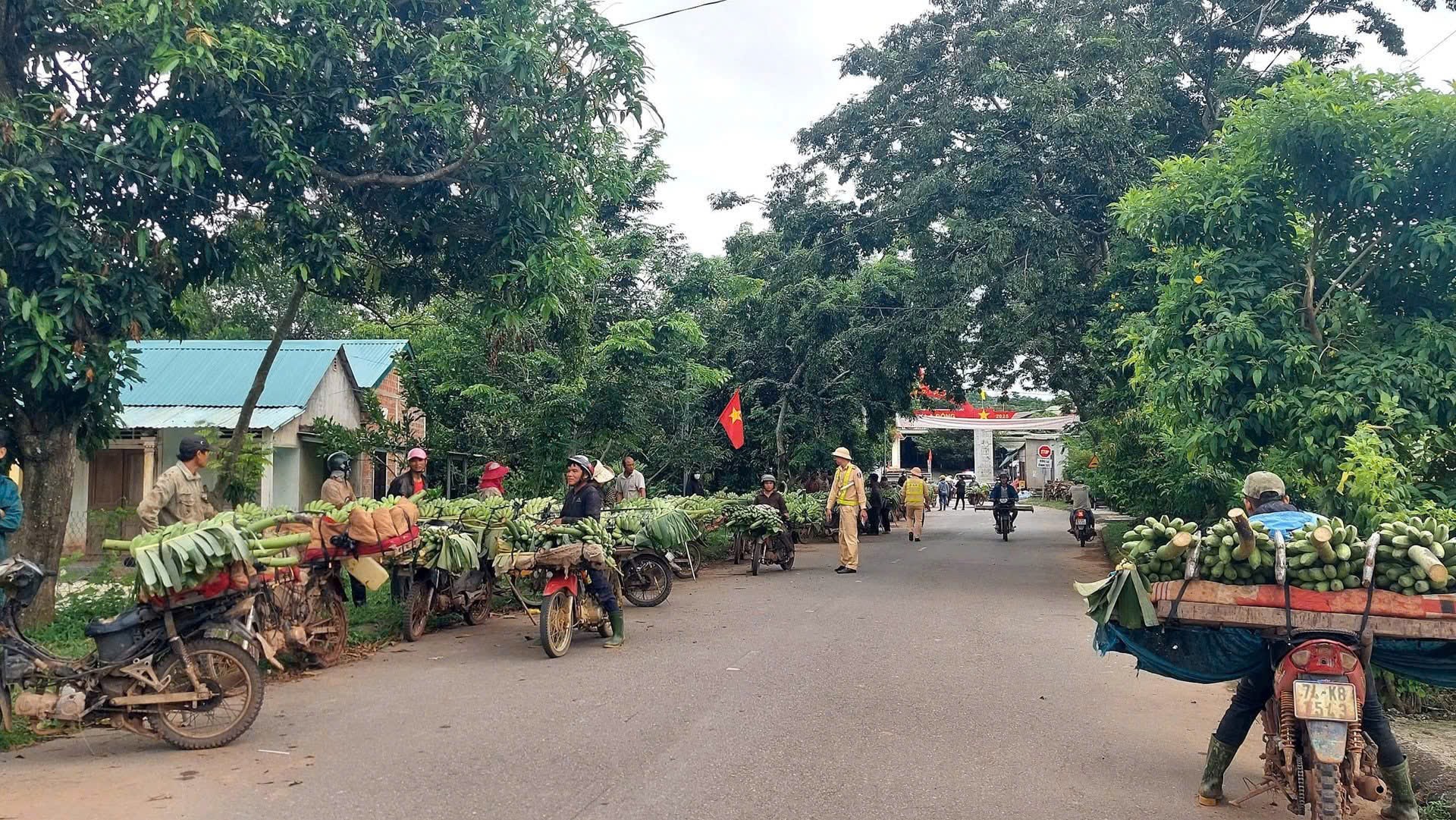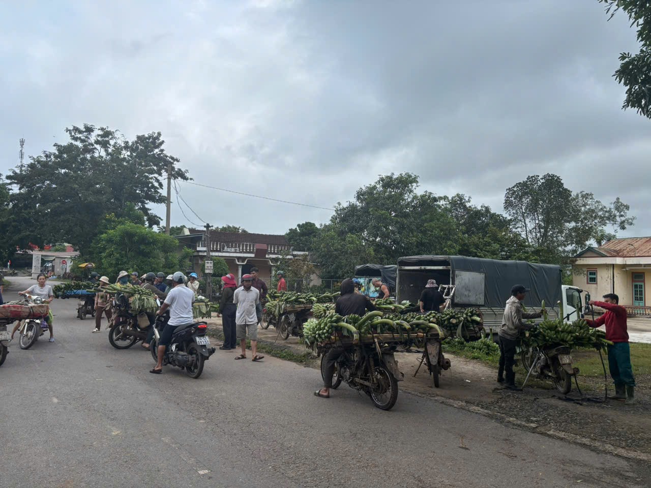 Ngay sáng ngày 22/9, nhiều người buôn chuối từ các xã vùng Lìa, xã Lao Bảo và ở các địa phương của nước bạn Lào đã tập trung về đây bán chuối.