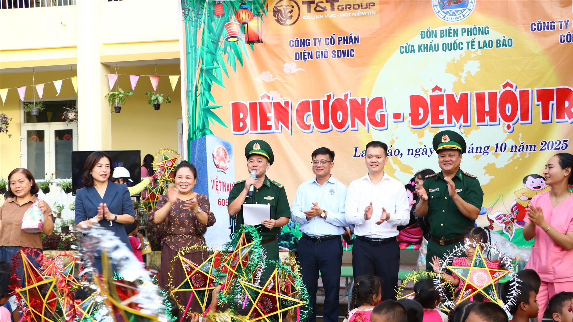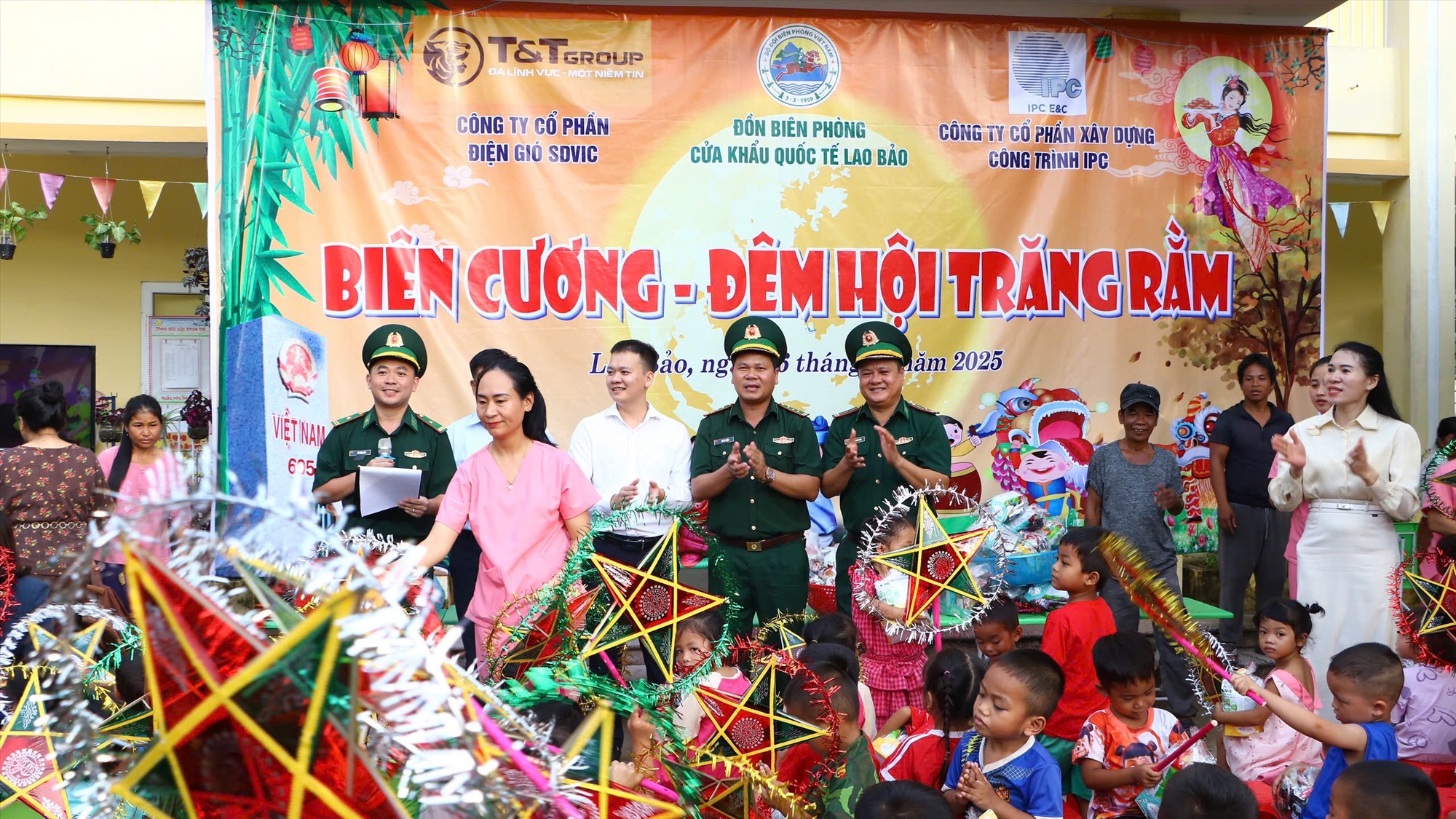 Nằm trong chuỗi hoạt động tổ chức Tết Trung thu cho các cháu thiếu nhi trên địa bàn biên giới, chiều ngày 06/10/2025, Đồn Biên phòng CKQT Lao Bảo (Quảng Trị) phối hợp với Công ty Cổ phần điện gió SDVIC, Tập đoàn T&T Gruop, Công ty Cổ phần xây dựng Công trình IPC tổ chức Chương trình “Biên cương - Đêm hội trăng rằm”.