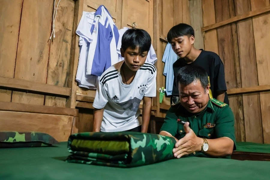 Trung tá Ngô Quang Thuyên - Chính trị viên Đồn Biên phòng Hướng Phùng, chia sẻ: “Ở vùng biên giới, điều kiện còn nhiều khó khăn, không ít em nhỏ cũng đến trường trong sự thiếu thốn. Với tình thương và trách nhiệm, chúng tôi đón nhận các cháu như con ruột.