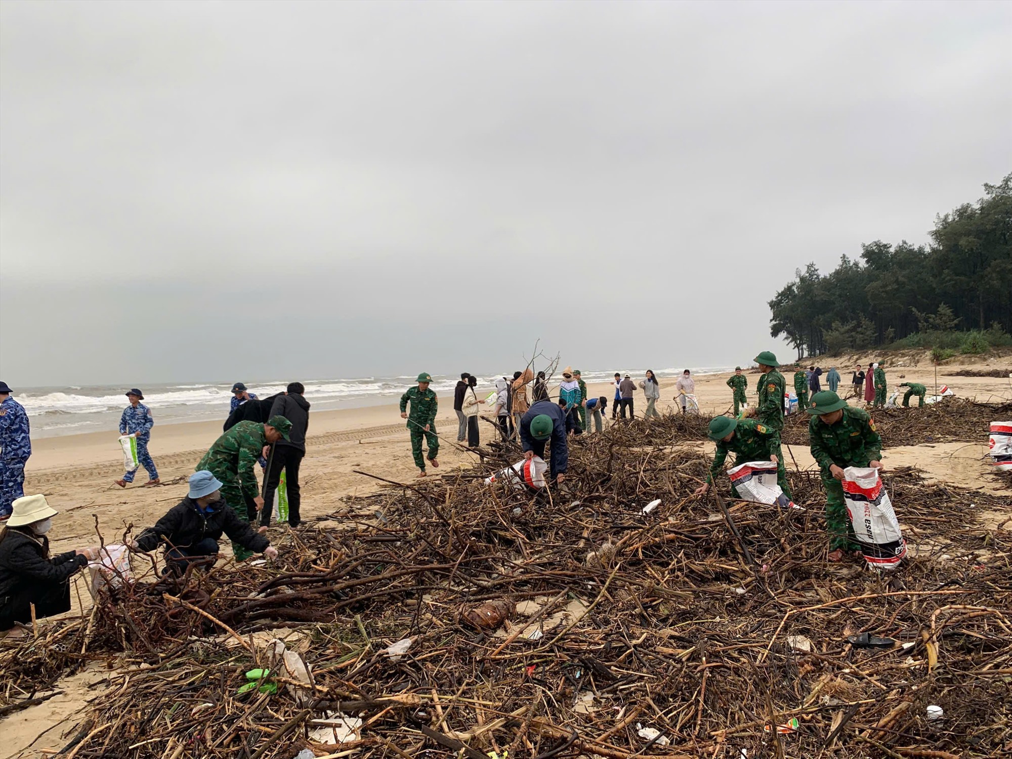 Chỉ trong buổi sáng, hàng chục mét khối rác thải các loại đã được thu gom, vận chuyển đến điểm xử lý tập trung. Hoạt động không chỉ góp phần bảo vệ môi trường biển sau thiên tai mà còn lan tỏa tinh thần trách nhiệm của tuổi trẻ lực lượng vũ trang và đoàn viên địa phương đối với công tác bảo vệ môi trường sinh thái.