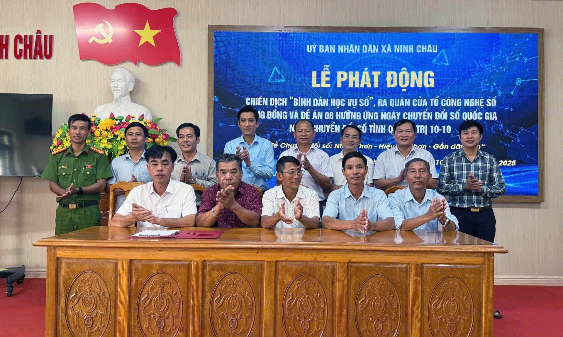 Thực hiện phong trào “Bình dân học vụ số”, xã Ninh Châu đặt mục tiêu 100% cán bộ, công chức, viên chức sử dụng thành thạo các ứng dụng số cơ bản; ít nhất 90% hộ gia đình có người biết dùng điện thoại thông minh, truy cập internet và thực hiện dịch vụ công trực tuyến. Đặc biệt, trong năm 2025 thực hiện hoàn thành các chỉ tiêu: 80% người dân được cấp tài khoản định danh điện tử VneID mức độ 2; 80% người dân tích hợp thẻ bảo hiểm y tế vào phần mềm VneID; 70% người có công, 30% đối tượng bảo trợ xã hội và 80% người được hưởng lương hưu, trợ cấp bảo hiểm xã hội, trợ cấp thất nghiệp được chi trả chế độ hàng tháng qua tài khoản ATM.