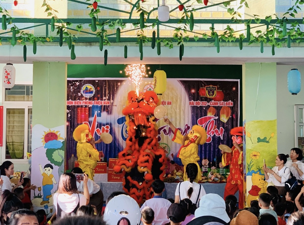 Để chuẩn bị tốt cho chương trình, ngay từ sáng sớm đã có hơn 20 cán bộ, chiến sĩ Đồn Biên phòng Triệu Vân, Hải đội 202, Cảnh sát biển và các cô giáo đã tất bật làm công tác trang trí, chuẩn bị quà, mâm cỗ, đèn ông sao và dụng cụ để tổ chức các trò chơi.