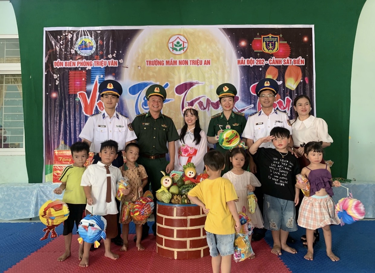 Trung tá Nguyễn Xuân Vũ, Đồn trưởng Đồn Biên phòng Triệu Vân chia sẻ: “Cuộc sống của bà con trên điạ bàn bãi ngang vùng biên giới biển còn nhiều khó khăn, vất vả, các cháu nhỏ cũng chịu nhiều thiệt thòi. Đồn Biên phòng Triệu Vân cùng với Hải đội 202, Cảnh sát biển tổ chức chương trình với mong muốn, tạo cho các cháu có được một cái tết Trung thu ấm áp, vui vẻ, nhiều kỷ niệm ngọt ngào. Ngoài điểm Trường Mầm non Triệu An, đơn vị còn huy động hơn 1000 suất quà để triển khai chương trình vui Tết Trung thu tại 03 địa điểm khác trên địa bàn 2 xã Triệu Cơ và Nam Cửa Việt”.