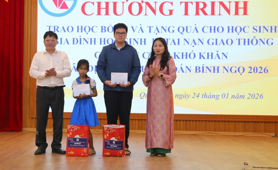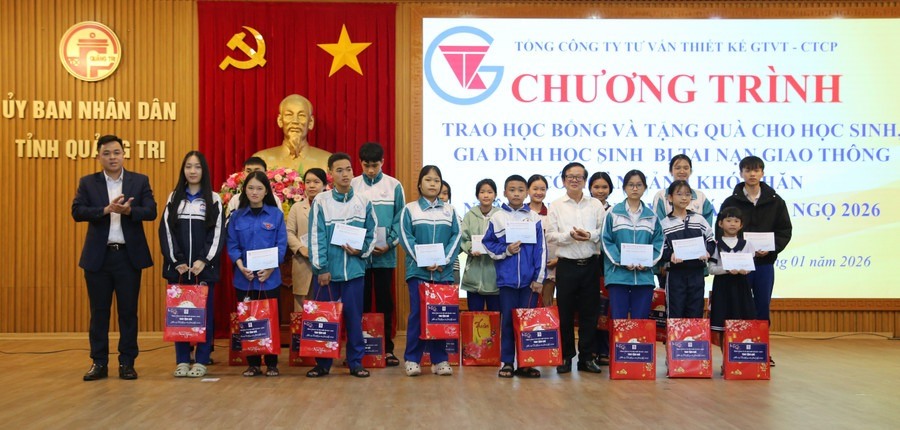 Chiều tối 24/1, tại hội trường UBND tỉnh Quảng Trị, Hội Khuyến học tỉnh tổ chức trao học bổng và tặng quà cho học sinh, gia đình học sinh bị tai nạn giao thông (TNGT) và có hoàn cảnh đặc biệt khó khăn, nhân dịp Tết Nguyên đán Bính Ngọ 2026.