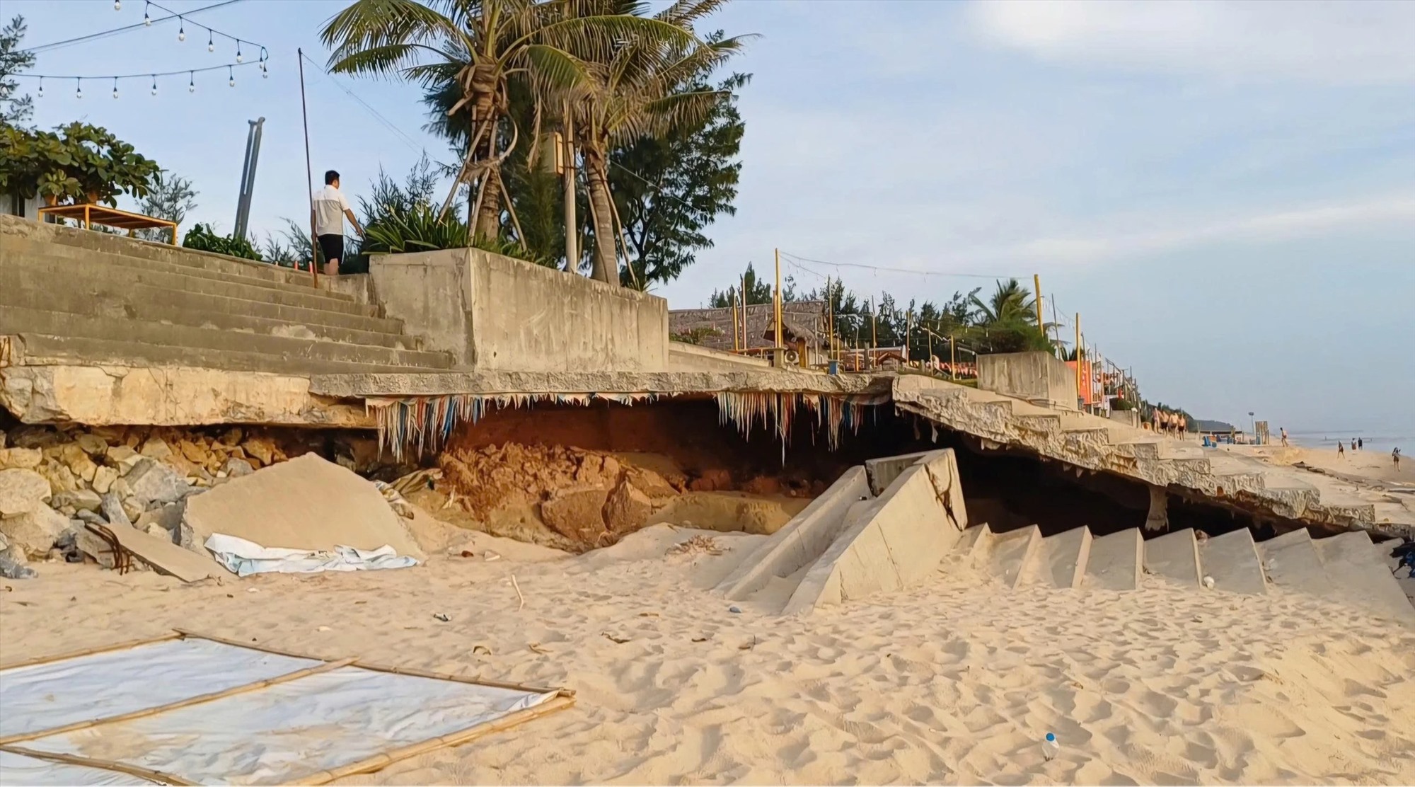 Theo bà Đoàn Thị Hồng Phương, Phó Giám đốc Ban Quản lý Dịch vụ công ích Đồng Hới, hiện nay, tại bãi biển Nhật Lệ 2, đơn vị được giao quản lý khai thác phần bãi cát dọc bãi biển. Còn công trình kè chắn sóng tại bãi biển Nhật Lệ 2 do đơn vị khác quản lý và đang trong quá trình thi công thì bị ảnh hưởng của bão năm 2020 làm hư hỏng nặng. Công trình với thiết kế có các cống thoát nước mưa. Tuy nhiên, một số hộ kinh doanh