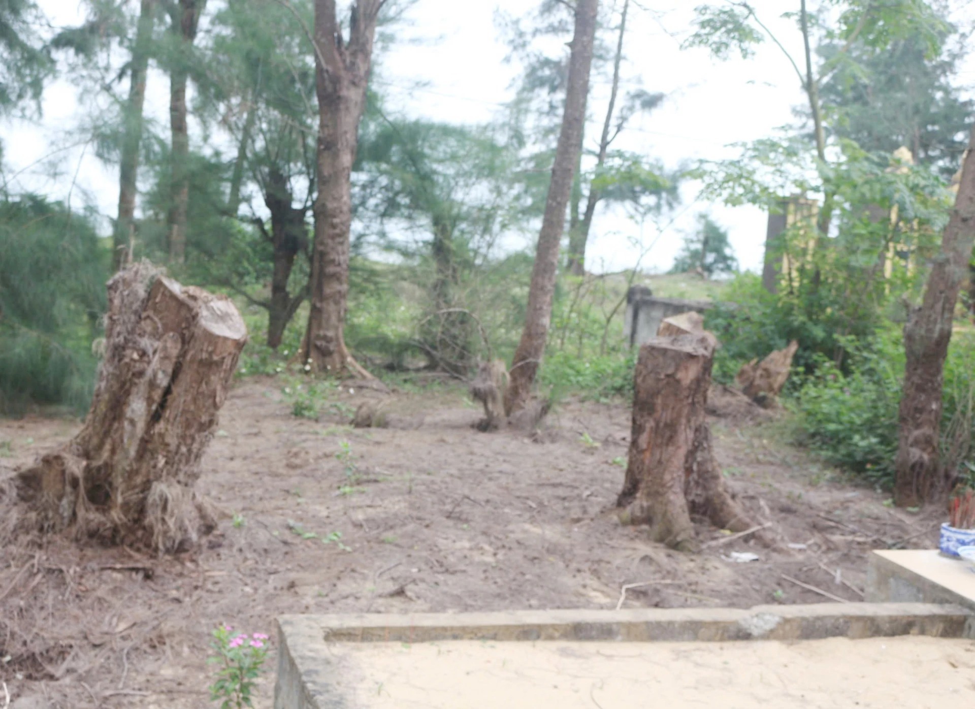 Từ phản ánh của người dân, có mặt tại khu vực rừng dương thuộc thôn Trung Vũ, xã Hòa Trạch, chúng tôi ghi nhận nhiều cây dương liễu có đường kính lớn lên đến 40cm, tuổi đời hàng chục năm bị cắt khoanh vỏ chạy vòng quanh gốc và lộ rõ phần gỗ bên trong. Một số cây đã bị cắt sát gốc, số khác xuất hiện vết chém, bóc vỏ hoặc đào xới phần gốc, cho thấy cây đã bị tác động có chủ ý.