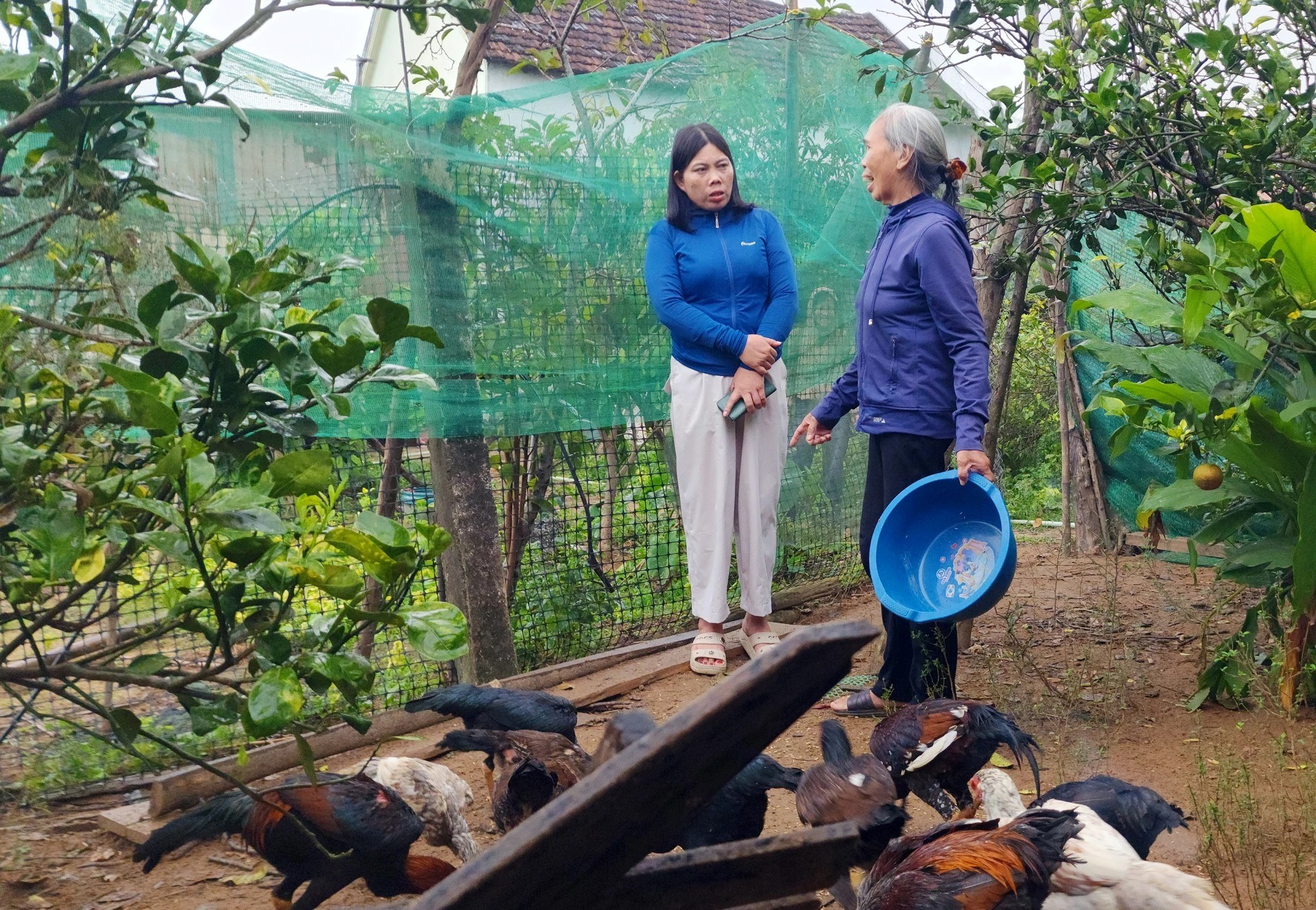 Theo hướng dẫn của trưởng thôn Lê Thị Sinh Thương, gia đình bà Dương Thị Nghiềm tận dụng hơn 6.500m2 đất vườn để phát triển mô hình kinh tế theo hướng đa canh, đa con. Đến nay, dù tuổi đã cao nhưng hai vợ chồng bà Nghiềm vẫn duy trì ổn định mô hình kinh tế với thu nhập hàng trăm triệu đồng mỗi năm.