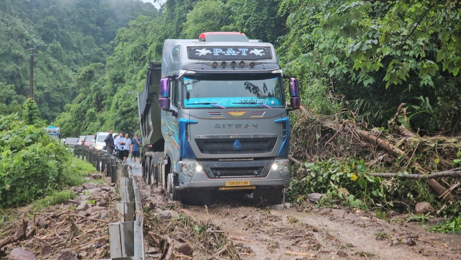 Sau khi nhận tin báo, lực lượng CSGT, Công an xã phối hợp lực lượng quản lý đường bộ khẩn trương phân luồng, khắc phục để đảm bảo lưu thông trên tuyến.