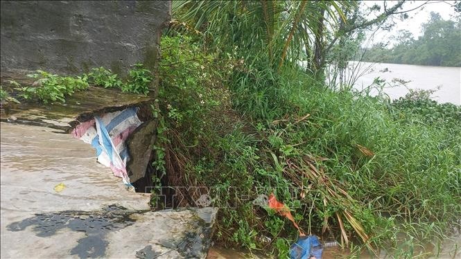 Theo ghi nhận của phóng viên TTXVN vào sáng 23/10, tại thôn Vân Hòa, xã Triệu Bình, nhiều đoạn bờ sông đã bị lở sâu, ăn sát vào khu dân cư và đường giao thông. Đứng trước ngôi nhà bị xói lở đến sát tường, bà Trần Thị Kiều, thôn Vân Hòa bày tỏ lo lắng, sạt lở bờ sông ngày càng phức tạp. Trong vòng 2 năm qua, bờ sông bị sạt lở thêm gần 5m, vào sát bờ tường nhà bà. Nếu tình trạng này còn kéo dài, ngôi nhà có thể bị cuốn trôi ra sông bất cứ lúc nào. Mong Nhà nước sớm có biện pháp hỗ trợ, xây dựng kè kiên cố để người dân an cư lạc nghiệp.