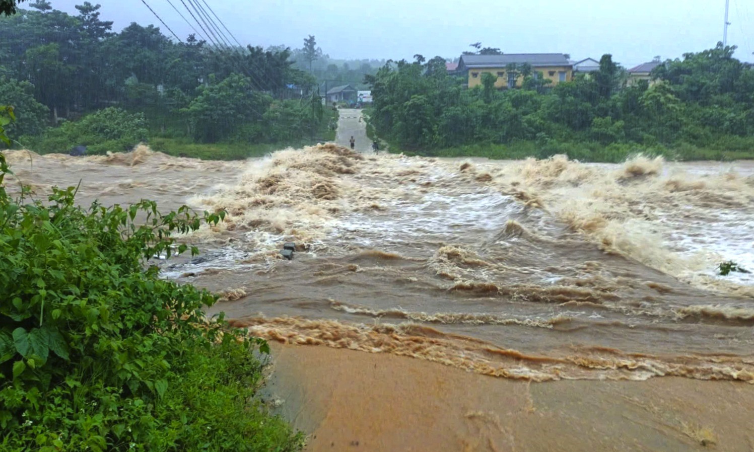 Tại các điểm ngập lụt, chia cắt, chính quyền địa phương đã tiến hành cắm biển báo nguy hiểm và tuyên truyền người dân không qua lại để bảo đảm an toàn.