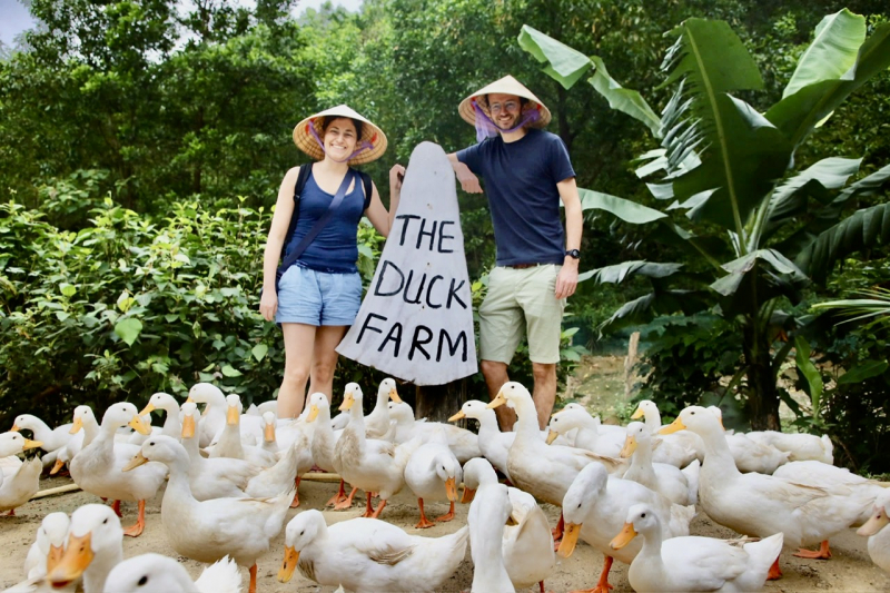 Không chỉ dừng lại ở quy mô, một số điểm đến còn tạo được dấu ấn riêng nhờ cách làm sáng tạo. Tại khu vực Bồng Lai, những trải nghiệm như cưỡi trâu, câu cá hay để đàn vịt rỉa chân trở thành điều khiến nhiều du khách thích thú. Chị Julia, du khách đến từ Anh, chia sẻ rằng điều khiến chị ấn tượng không phải là sự cầu kỳ, mà chính là cảm giác được hòa mình vào đời sống nông thôn, được làm những công việc giản dị cùng người dân địa phương.