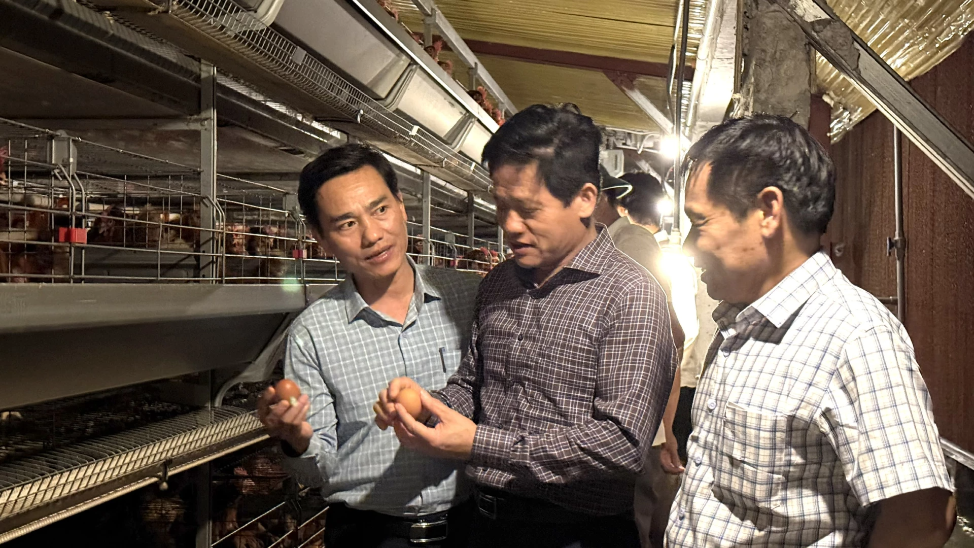 Chiều cùng ngày, đồng chí Phó Chủ tịch UBND tỉnh Lê Văn Bảo đã đến kiểm tra trang trại nông nghiệp sạch của Công ty TNHH Thương mại-Xây dựng tổng hợp Hoàng Văn tại xã Lệ Ninh. Đây là mô hình chăn nuôi gà đẻ trứng đạt tiêu chuẩn VietGAHP, đã được cấp mã QR truy xuất nguồn gốc. Trang trại có quy mô 190.000 con gà mỗi năm, trong đó có 90.000 gà đẻ trứng. Trong năm 2026, công ty dự kiến sẽ nâng số lượng tổng đàn để đáp ứng nhu cầu thực phẩm sạch cho thị trường trong và ngoài tỉnh.