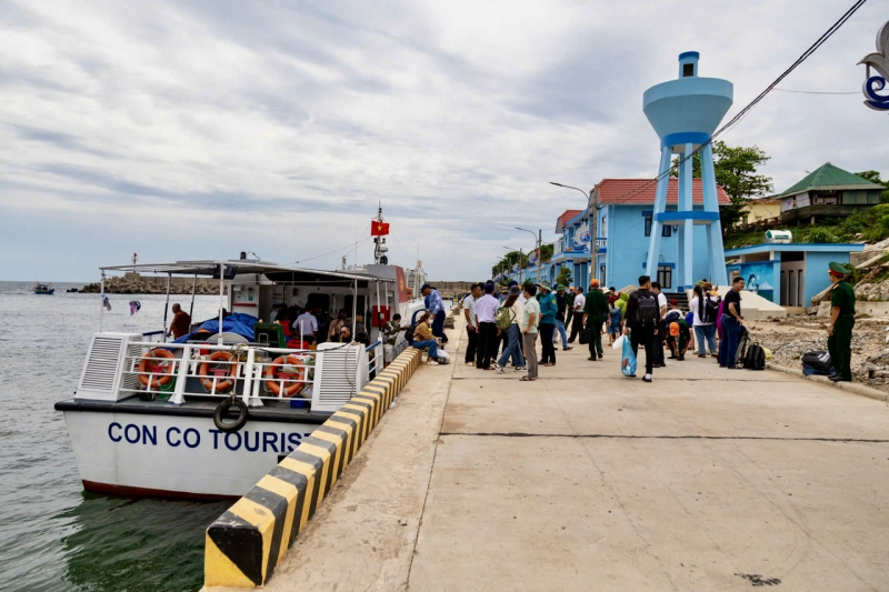 Con tàu vừa áp mạn, dây neo được quăng xuống cầu cảng. Từng tốp du khách lần lượt xuống bến, người kéo vali, người giơ điện thoại ghi hình, bước lên đảo theo sự hướng dẫn của các chiến sĩ biên phòng. Phía trong bờ, những chủ homestay đã chờ sẵn, gọi khách, xách giúp hành lý. Cầu cảng vì thế rộn lên tiếng nói cười, khác hẳn vẻ yên ắng trước đây.