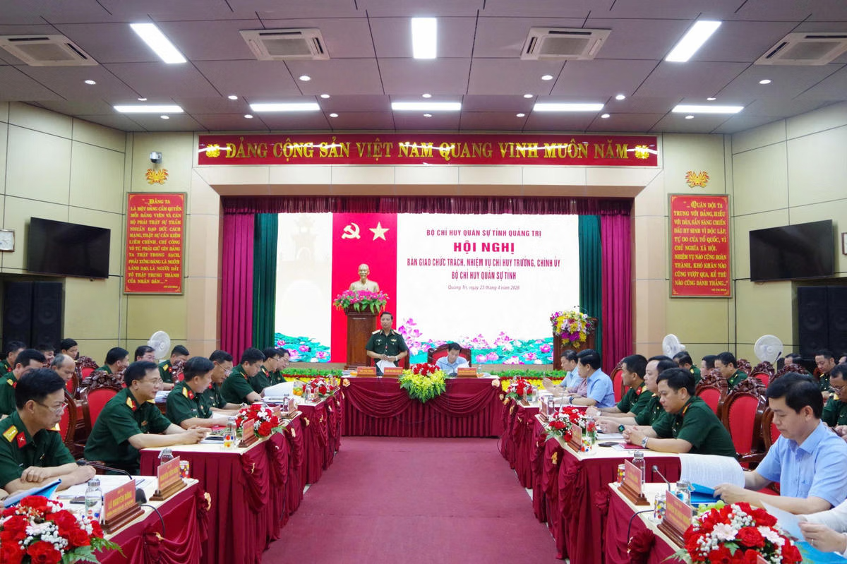 Chiều 23/4, Bộ Chỉ huy Quân sự (CHQS) tỉnh Quảng Trị tổ chức hội nghị bàn giao chức vụ Chỉ huy trưởng, Chính ủy Bộ CHQS tỉnh (hội nghị).